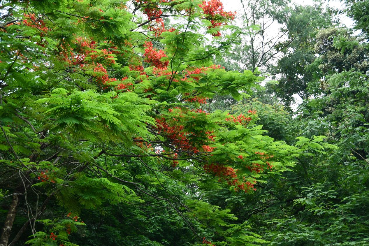 凤凰木,因“叶如飞凰之羽,花若丹凤之冠”而得名。盛花期在五六月间,正值毕业季,它的花语是离别、思念、火热的青春。