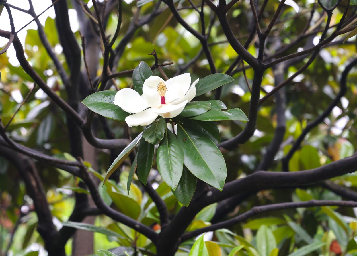 荷花玉兰,花洁白硕大,高洁似莲,花香萦绕,为著名的庭园观赏植物和抗污染植物。