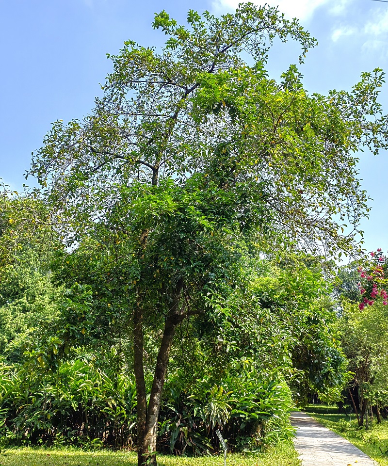岭南人喜欢用果树来造园布景,植物园也不例外,比如莲雾、芒果、阳桃、桂木等水果,都有可能捡到的。桂木枝叶浓密,树形美观,常用于园林观赏。我们可能见过,但不一定吃过,就好像我一样的“有眼不识泰山”。生物园路边的桂木,阳光充沛,年年丰收,果子掉了一地。从园地工作的土生土长的广州大姐处得知能吃,迫不及待的摘下一个树上熟透的果子掰开,酸甜多汁,口舌生津。