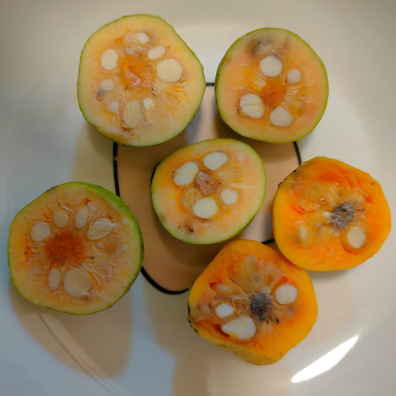 读罢此文,狗果没吃到,想必多少有点遗憾。其实呢,狗果相当于“迷你版”的波罗蜜,波罗蜜不难吃到。桂木和波罗蜜都来自桑科波罗蜜属,不时不食,现在也是波罗蜜大量上市的季节。波罗蜜又称树菠萝,果实从树干或粗枝上长出,老树突出地面的根也可以结果,果肉很多,种子也很多,有着“世界巨果”之称。