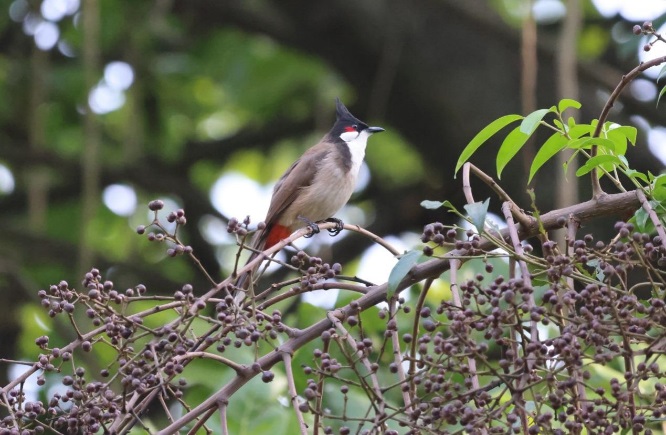 白喉红臀鹎,性格活泼,喜欢吃果实