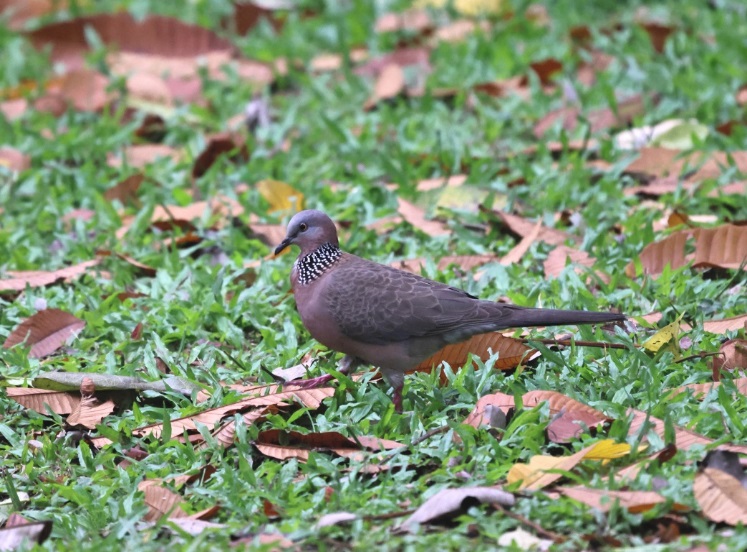“野鸽子”珠颈斑鸠在草地上优雅从容的走着