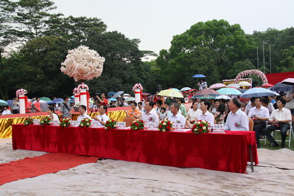 5月20日,由广东省直团工委、广发银行团委主办,华南植物园协办的主题为“幸福心历程,真情筑家园”的省直机关青年集体婚礼在华南植物园举行。省直机关工委副书记董励国,广发银行行长利明献、广州分院党组书记郭俊、团省委副书记池志雄、华南植物园党委书记任海等领导、嘉宾及78对新人共1000余人参加了活动。