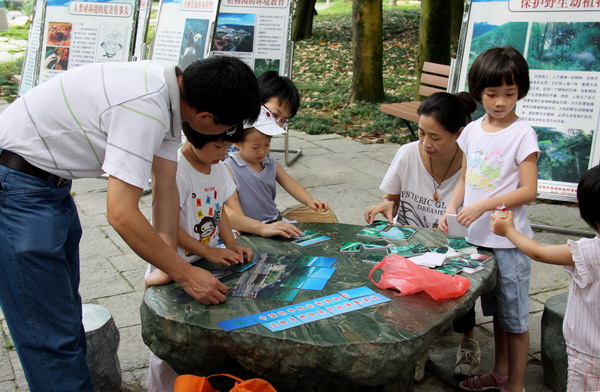 上午,温室大草坪,互动体验活动项目纷纷登场:植物显微世界以典型的各种植物组织切片,向游客展示了美丽的植物微观世界,科普工作人员介绍了精美的植物组织切片是如何制作染色,不同切片的展现内容等;热带雨林探险记、趣味植物拼图吸引了很多亲子家庭参与,如趣味植物谜语竞猜、植物知识有奖问答等让游客们乐在其中。同时,为本次活动特别准备的《植物、环境、人类》及《亚洲生物多样性保护》科普展板充分展示了环境及生物多样性保护的环保主题。
