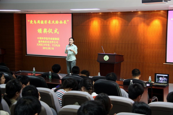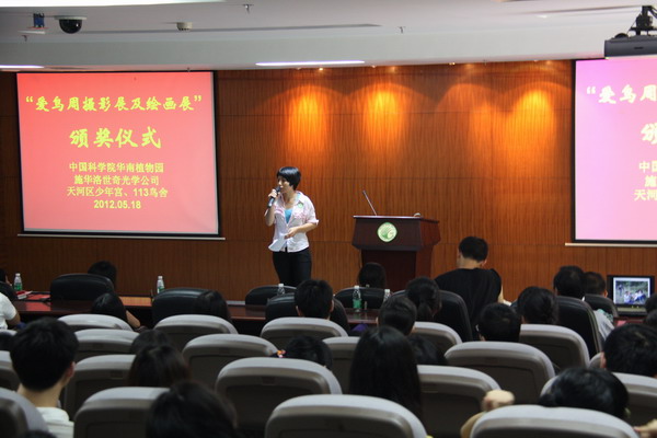 5月19日,华南植物园举行了“爱鸟周”摄影及绘画展获奖作品颁奖仪式,标志着为期2个月的“爱鸟周”摄影及绘画展活动圆满落幕。部分参展作者及相关人员约100余人参加了颁奖活动。