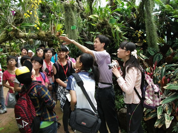 7月7-12日,华南植物园开展的“中国科学院科技人才早期培养夏令营”活动日渐丰富多彩。7日上午,同学们分三组分别在任海研究员、廖景平研究员、杜志坚老师的带领下参观世界植物奇观——温室群景区。三位老师向同学们讲解热带雨林植物、沙漠植物、南极北极高山植物、奇花异果及水下植物等,并结合各自的研究领域向学生们普及植物系统进化生物学、繁殖生物学、生态恢复学、珍稀濒危植物种群回归、植物病虫害预测预报及防治等方面的知识。深入浅出、通俗易懂的讲解,让同学们在辨认植物的同时掌握植物学、环境学方面的知识。