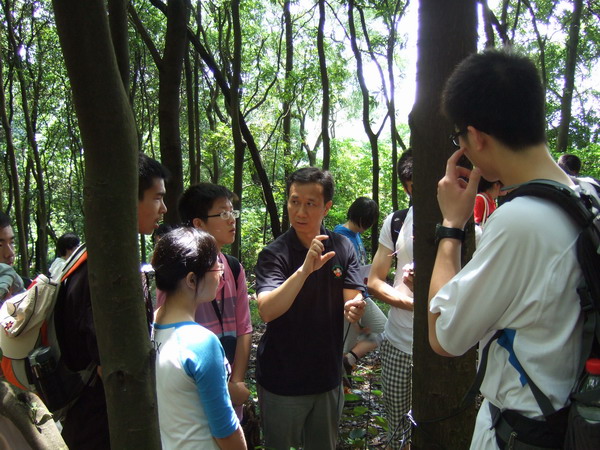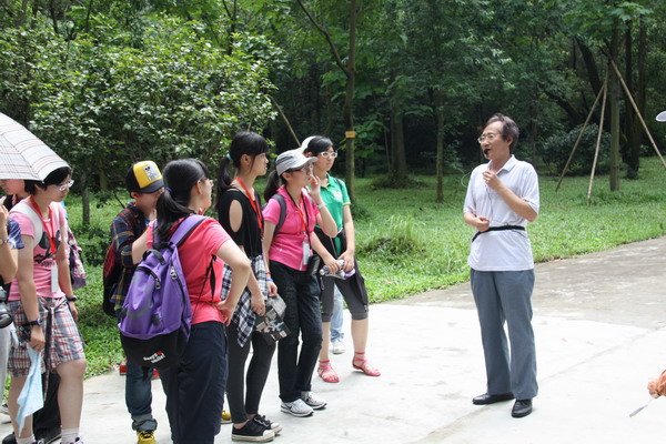 随后,同学们分组进行“乔木整树蒸腾作用野外测定实验”、“能源植物的未来发展”、“姜目植物分类基础实验”三个科学小课题研究。在小青山野外样地,赵平研究员向同学们讲解什么是植物的蒸腾作用、测定叶片蒸腾作用的设备及其工作原理,学生们在老师的指导下亲手完成安装探针、连接设备、运行软件直至输出数据等全过程,并根据实验数据进行计算,完成科学实验报告。在能源植物专类园,吴国江研究员向同学们介绍各种能源植物及国内外对于生物能源研究方面的进展及成果。在姜园,来自美国的Tom教授用英文与学生交流,向学生们讲解姜目八大科的植物特征及植物分类学基础知识。通过这些科学小课题学习,培养了学生们的自我思考意识和科普知识。
