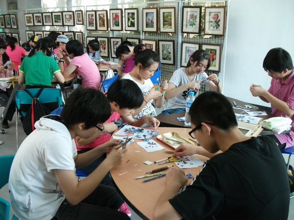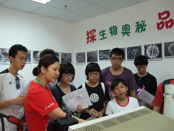 10日下午,来自香港的14名学生加入到夏令营队伍中。大家一起在科普信息中心互动实验室进行扫描电子显微镜和光学数码显微镜操作,观察植物的细胞、花粉、叶片、花朵、果实,昆虫的复眼结构等微观世界。通过体验,比较两种显微镜的分辨能力、工作原理差异等。在植物艺术制作室,同学们相互合作进行植物押花制作,完成一幅美丽的作品。在温室草坪,专业教练带领同学们进行团队拓展训练,“连体赛跑”、“黄金罗盘”、“密码传递”、“团队在哪里”游戏,考验大家的合作精神、默契程度、信任度、组织力和执行力。同学们从游戏中感悟个人或集体、成功与失败、付出和收获的意义,游戏结束后大家分享着心得体会。
