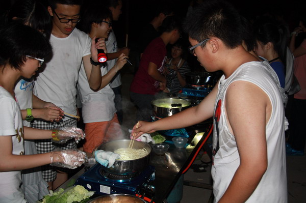 12日晚,同学们来到生物体验实践园内,体验自己动手的野炊乐趣。大家分工合作,摘菜、生火、做面条、烤红薯、煮玉米,忙得大汗淋漓又欢笑不断。有同学表示自己在家从没做过饭,这次品尝到自己亲手做的晚餐,觉得分外美味香甜。吃完晚餐,来自香港的师生提出了对生活垃圾要分类,不可混在一起。这一举动让大家深切感受到环保意识深入到日常中的重要性。