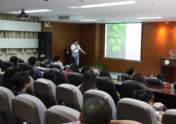 广东第二师范学院廖晓东副教授通过《观鸟唤醒人与自然的自古情缘》的精彩演讲,为同学们拨开观鸟世界的神秘面纱,阐述鸟类与人类的亲密关系及观鸟的历史与现状。随后,廖晓东副教授呼吁与会人员积极参与由华南植物园和施华洛世奇光学公司联合举办的观鸟、护鸟科普活动,希望大家珍惜自然、热爱自然,真正拥有自然、享受自然。老专家陈忠毅研究员则以《华南植物园发展历史》的精彩报告,向与会者展现华南植物园不同时期老一辈科学家通过艰苦创业建立起来的光辉业绩,以及朴实的“献身科学、奉献社会、造福人类、报效祖国”科学精神。他勉励大家积极投身于我国的科学事业,为建设我们共同的美好家园贡献自己的聪明才智。
