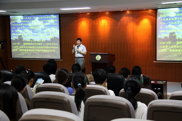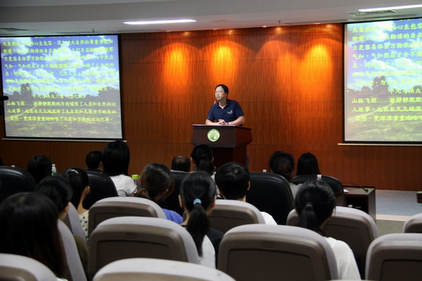 蒋厚泉主任为培训班作开班致辞,他首先恭喜25名新飞羽志愿者经过层层筛选,从逾两百高校大学生报名者中脱颖而出,将担负起带领游客在植物园内进行观鸟、观蝶、观昆虫、观植物等自然观察活动的重任。他指出,华南植物园开展的飞羽志愿者观鸟导赏模式在全国为首创,开展以来受到了市民的热烈欢迎。他勉励同学们珍惜机会,充分利用这一平台和自己所学,带领游客与大自然亲密接触,在服务游客的同时成就自身价值,为大学生活留下精彩的一页。