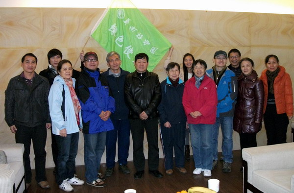 蒋厚泉(中)与志愿者代表们合影