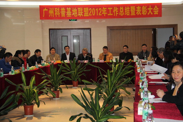 1月11-13日,广州科普基地联盟2012年工作总结暨表彰大会在广州召开。广州市科技和信息化局党组副书记、联盟理事长马曙,广东科学中心主任、联盟常务副理事长王可炜,华南植物园园艺中心执行主任、联盟副理事长蒋厚泉以及来自55家成员单位的领导和代表60多人出席会议。