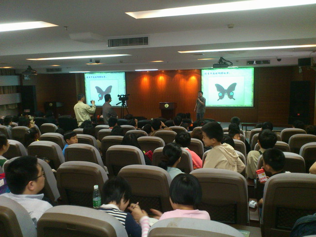 为了让广大广州市民有机会走近蝴蝶,科学认识蝴蝶这一活跃在身边的美丽生物,华南植物园将课堂知识和户外实践相结合,揭开蝴蝶的神秘面纱。在科普信息中心,科普知识讲座《观蝶与广州常见蝴蝶》精彩上演,辅导老师通过精美的蝴蝶图片,详细介绍蝴蝶的生长周期、讲解广州常见蝴蝶的辨识方法和技巧,同时指导孩子们应该在什么时候去观蝶,到哪里找蝴蝶、如何靠近蝴蝶、如何饲养蝴蝶、观蝶前做什么准备工作,使家长和孩子对观蝶有了系统的认识。
