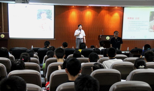 宣讲会上,蒋厚泉致辞,他向大学生们简要介绍了华南植物园的情况及飞羽团队成立三年来的发展历程,对于飞羽志愿者们的辛勤付出表示高度赞赏,并勉励大学生们充分发挥自身的能力和热情,利用华南植物园和飞羽团队的平台,为社会志愿服务贡献自己的力量。他希望有更多热爱大自然的同学加入飞羽志愿者团队。