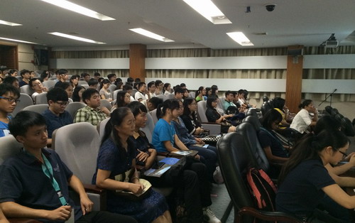 会上,往期飞羽志愿者深情回顾团队的成长历程,也分享了在团队服务中的所思所悟和所获。郭世军先生介绍了飞羽志愿者团队的组织结构和规章制度,并公布了第四期飞羽志愿者招新笔试题目。在随后进行笔试及面试后,第四期飞羽志愿者团队将从这100多名大学生中产生。国庆黄金周期间他们将正式上岗为公众提供免费导赏服务,带领公众在华南植物园进行观鸟、观蝶、观昆虫、观植物等自然观察体验活动。
