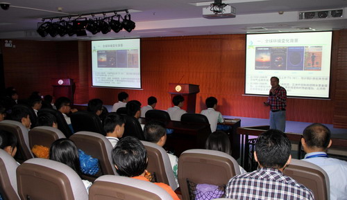 随后,在科普信息中心报告厅,华南植物园副研究员李跃林博士为同学们作《基于全球环境变化背景与森林生态学观点的科学研究与科普探究》的科普报告,从全球环境变化的背景、温室效应的产生、森林生态学研究方法到其本人在国外进行科学研究及科普实践的实例等方面,通俗易懂地向同学们介绍了当今环境生态学领域最热门的研究方向。