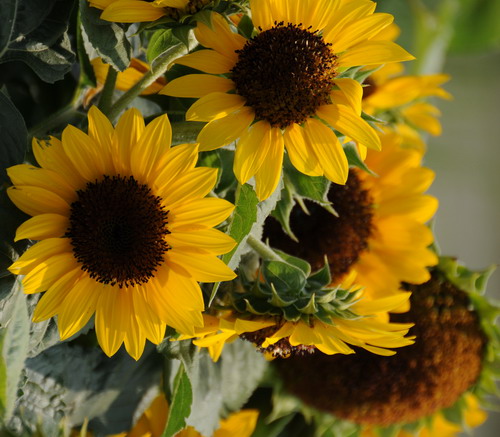 向日葵是一种非常美丽的观赏花卉。除了外形酷似太阳以外,它的花朵明亮大方,极受众人喜爱。观赏向日葵(Helianthus annuus)原产北美,是菊科一年生草本植物。因为来自西方,所以传入我国后称为“西番花”,又名胖金妹、迎阳花、日轮草、望日莲。其高度可达3m,盘型花序可宽达30cm,因花序随太阳转动而得名。其种子叫葵花籽,俗称瓜子,可榨出低胆固醇的高级食用葵花油,也是老少皆宜的零食。向日葵四季皆可种植,但花期主要在夏秋两季,花期可达两周以上。向日葵的花语是爱慕、光辉、忠诚。俄罗斯人、秘鲁人和玻利维亚人把向日葵作为光明和美好的象征,将向日葵选为国花。