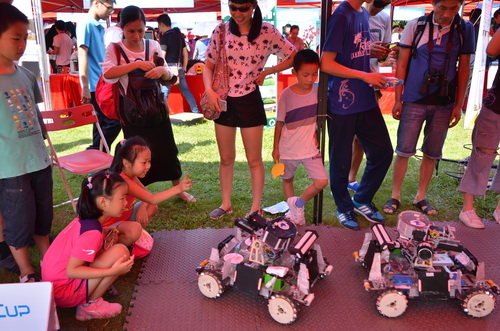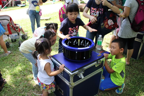 活动现场,一大批具有科技含量的项目亮相,如华南理工大学能弯能折的彩色柔性AMOLED显示屏项目、无人机特技飞行表演、机器人研制与表演、VR(虚拟现实)、AR(增强现实)产品展示与互动、智能云、智能生活项目等,还有专家科技成果展示等。创客空间是今年活动的另一个亮点,市民朋友可以亲身体验创客乐趣,如用传感器构造音乐键盘、青少年3D打印、小小化学家手工DIY精油皂、制作环保叶脉书签、微相集等,亲身感受科技给生活带来的美好和便捷。