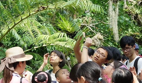 由广州市十佳科普讲解员带领参观专类园,学习与感受岭南园林和植物文化。在温室群景区识别世界珍奇植物:在神秘的热带雨林里、炙热的沙漠地带、冰冷的南北极,学员将亲近各种奇花异果,感受大自然鬼斧神工的神奇造化,欣赏绽放花朵的鲜艳美丽,了解每一片叶子的精妙结构,在与植物的“亲密交友”之后,将激发学员创作压花艺术品的灵感。