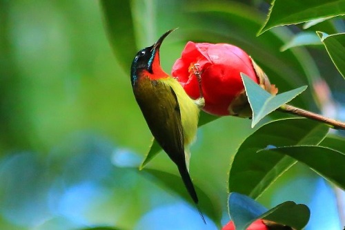 一年一度,在这个和风丽日的冬季,华南植物园山茶园T台大秀又开始了,茶梅、明天、白雪塔、嫦娥彩、十八学士、金盘荔枝、红花油茶、杜鹃红山茶、越南抱茎茶……各种羽衣霓裳、鲜丽华美,红耳鹎、暗绿绣眼鸟、叉尾太阳鸟……各种大咖都来了,你来吗?