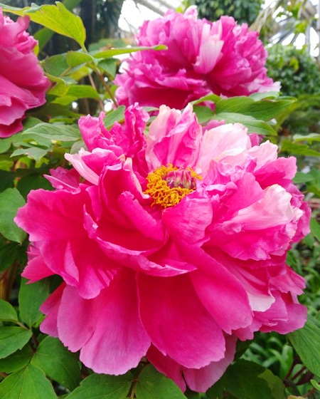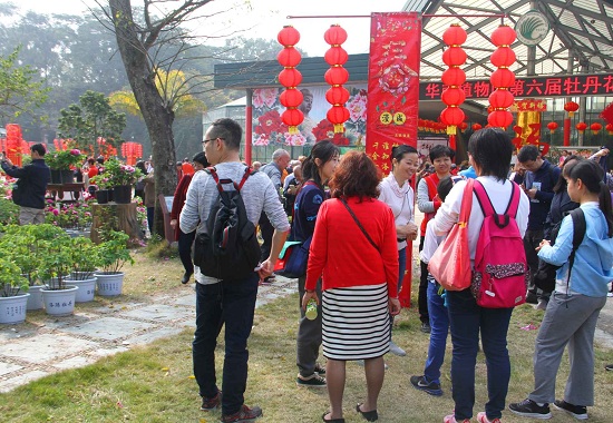 细细风送袅袅香,迟迟日暖牡丹芳。妆扮洛阳春天的牡丹,给南国的冬天带来了春的气息——粉红的杨贵妃、蓝色的蓝月亮、黑色系冠世墨玉、白色的白王狮子、纯黄的海黄、艳红的芳纪、绿色的绿幕隐玉、还有嫁接的什锦牡丹……九大色系十个花型,华南植物园的温室群景区花如海、人如潮。