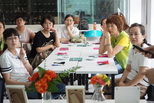 首先大家通过老师图文并茂的PPT讲解,了解压花艺术起源于19世纪的西欧,是运用大自然中植物的花、枝叶等素材通过专业压花工具进行整理、加工、脱水以保持植物原有的色彩和形态,再通过构思和设计在不同的基质上制作而成的植物学手作艺术,学员们欣赏了各种压花艺术品:压花装饰画、压花蜡烛、压花卡片、压花团扇、压花首饰……并为之赞叹不已,对其制作工艺充满好奇。