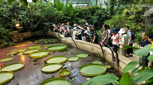 观赏温室里的克鲁兹王莲Victoria cruziana