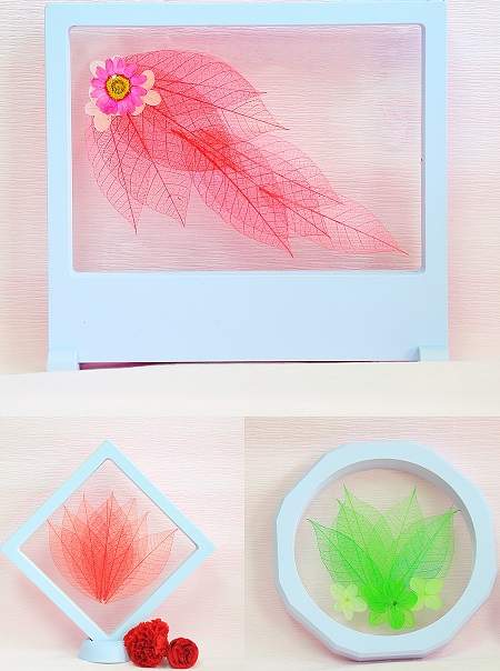 2)用桂花树的叶脉制作一个叶脉摆件。(叶脉摆件尺寸为方形18cm×18cm或长方形20cm×18cm