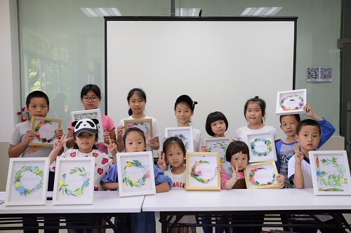 小朋友们与自己的作品合影