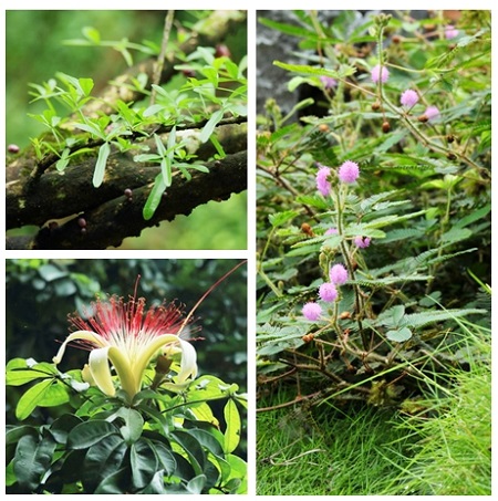 5)沿路讲解其他有趣的植物和花卉。(老茎开花十字架型的叉叶木、正反两色的翻白叶树、含羞草闭合的秘密、正在开花的水瓜栗、红花紫薇