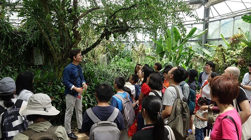 温室草坪偶遇的马勃菌(一种蘑菇),生机洋溢的散落在地上,来自真菌界的它,外形酷似人脑,也是一道美味佳肴。再走进温室群景区,来一场奇葩植物大探索:铁木瓜、面包树、白果莲雾、翡翠葛、菠萝蜜、槟榔、见血封喉、可可豆、咖哩、洋红西番莲、球兰、王莲。。