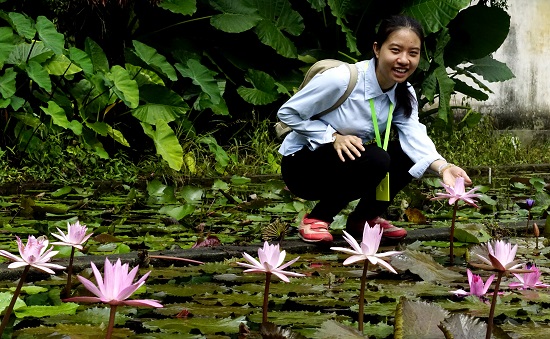规整的睡莲池,层层叠叠的圆叶,粉红、浅紫、淡黄的各色睡莲……不时飘洒的几滴雨似给娇羞的睡莲佩上了晶莹的闪钻……鳞鳞的波光、青草绿树,偶尔传来几声鸟鸣……还有比这更惬意、更自在的自然课堂吗?