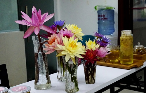 咽下口水,我们结束户外导赏,回到课室一边品睡莲茶,一边听老师讲睡莲的故事。袅袅的清香、丝丝的甘甜,闻着沁人的花香、细品缤纷的花色,聆听睡莲那些不为人知的秘密……