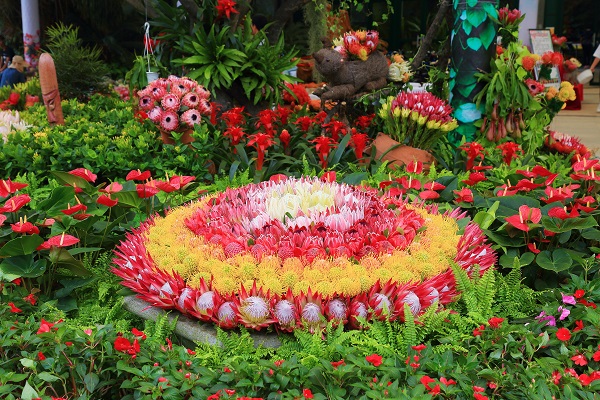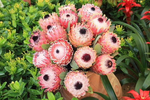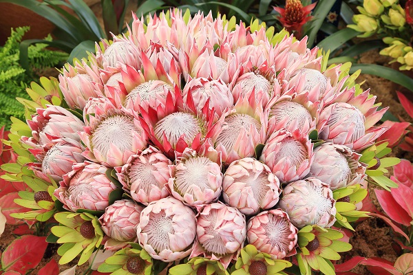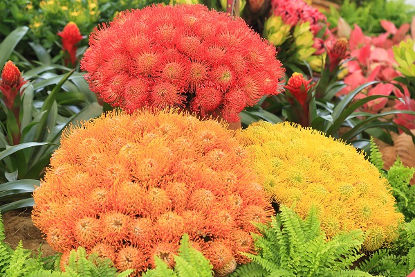 此次花展共展出各种帝王花属、针垫花属和木百合属植物品种约30种,总量达6000株,全部从南非空运而来,极具异域风情。品种色彩繁多的帝王花属植物——帝王、白雪皇后、迪夫人、粉红女士等,让您仿佛置身童话世界;而绚丽夺目的针垫花属植物——金粉、继承者、里格莱托等,俏丽耐看的木百合属植物——晚霞、野玫瑰、泛色记忆等,也各有各精彩,绝对不容错过。