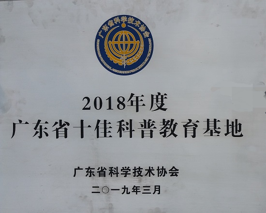 广东省十佳科普教育基地牌匾