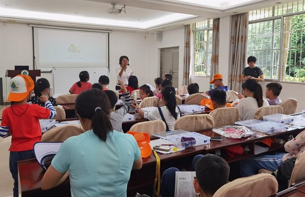 活动以有趣的亲子游戏开始。之后,鼎湖山保护区的老师利用任务卡,引导孩子和家长开展寻找森林颜色的视觉之旅,探索森林质感之旅,赤脚感受苔藓的触觉之旅,以及寻找森林声音的听觉之旅。现场人员还进行了森林瑜伽,化身一棵树、一朵花、一颗正在发芽的种子,体验的自然力量。亲子家庭,在规定时间内完成了八大体验任务,回到教室,将体验中最让他们难以忘怀的感觉用语言或图画的方式分享给大家。有的小孩分享做森林瑜伽,化成一粒小种子变强变大的过程,有的分享了制作森林奇趣声音的过程,把红花羊蹄甲的种子变成相声板子,发出啪啪的声音”.....“森林五感之旅,让学生和家长体验森林,探索自然,从而发现自然的乐趣和美好。