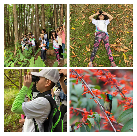 植物园内良好的环境和多样化的植物,为虫子和鸟儿们营造了生活的乐园。动植物在这里和谐共生。在植物传粉过程中,蝴蝶起着不可小觑的作用,那么它们的前身毛毛虫到底是害虫还是益虫呢?孩子们在与虫儿们有了亲密接触后引发了思考。通过一场穿越时空之旅,走进了远古时代恐龙生活的花园,回到恐龙曾经嬉戏和生活的地方,用心感受4亿年的蕨代芳华3.5亿年裸子植物随天地巨变的演变……孩子们经过了解与恐龙同时代的蕨类及苏铁类植物后,开始研究素食恐龙的食谱,思考可能导致恐龙灭绝的因素,认为除了可能食物不足外,还有环境和气候等原因,有待进一步探究。从恐龙到飞鸟,是否如科学家们推论的那样,飞鸟是由恐龙演化而来的呢?在观鸟课后,孩子们也展开了热烈的讨论。
