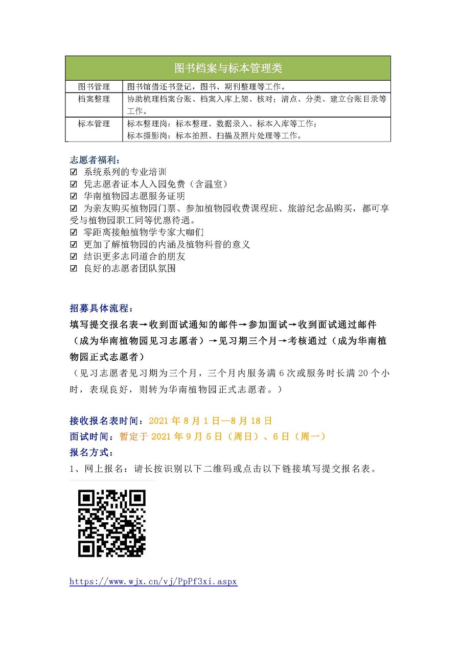 2021年华南植物园志愿者招募