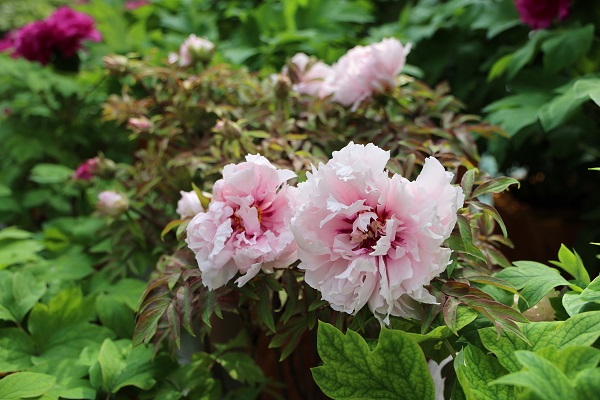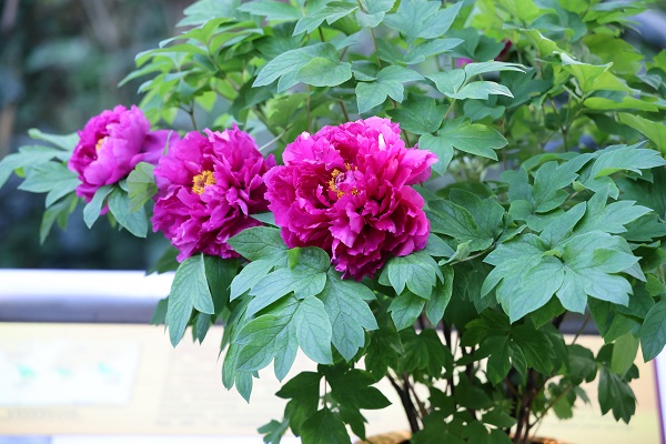 在牡丹精品展版块,将首次展出由日本选育的一年开两次花的牡丹新品类——寒牡丹,以及目前国内外最受欢迎的牡丹和芍药的杂交种——黄色系的巴茨拉和西瓜粉色的珊瑚落日夏威夷珊瑚等芍药品种。届时,国内外牡丹各色系中难得一见的珍稀品种,黑色系的墨润绝伦、绿色系的绿幕隐玉、蓝色系的蓝田玉、复色品种岛锦等都将齐聚一堂,集体亮相。花展中最受人瞩目的当属来自美国的纯正黄色品种海黄,以及当今牡丹界最夺目的来自日本的黄色品种皇冠,两者同台竞艳,好不热闹。这些国外精品亮相的背后也凝聚着科技的力量,一株国外品种从引进种苗到呈现到游客面前,前后需要六到七年甚至十年时间。