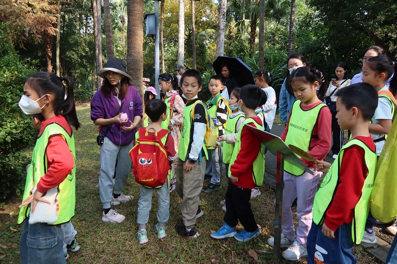 在户外课堂中,科普老师朱韵贤以游戏的形式,引导学员们通过叶序,辨识落羽杉与水杉;通过叶型辨识落羽杉与池杉;通过树形认识落羽杉与水松等。寻几种植物的种子与落叶;看水松基部膨大成柱槽;观落羽杉形形色色的膝根。通过自然观察,学员们认识到落羽杉的膝根、板根能够帮助其适应水边的环境,使其在台风天也屹立不倒。当天气转凉时,落羽杉叶片中叶绿素合成受到抑制,低温促进花青素等色素的合成,其叶片便由绿转黄再变红。
