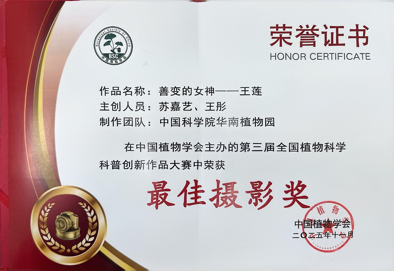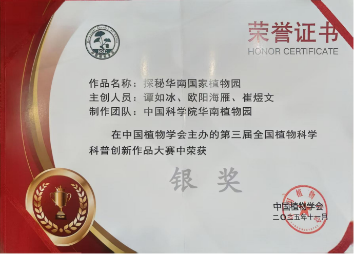 高质量的植物科普是连接科学与公众的重要桥梁。此次获奖作品,正是将前沿科研成果转化为大众可感可知的优质内容的典范,华南植物园也被授予“优秀组织单位”称号。近年来,华南植物园持续推动“科研+科普”深度融合,依托丰富的活植物收集与深厚的学术积淀,打造了一系列有温度、有深度、有广度的科普产品,未来将继续以创新为笔、以自然为纸,讲好中国植物故事。
