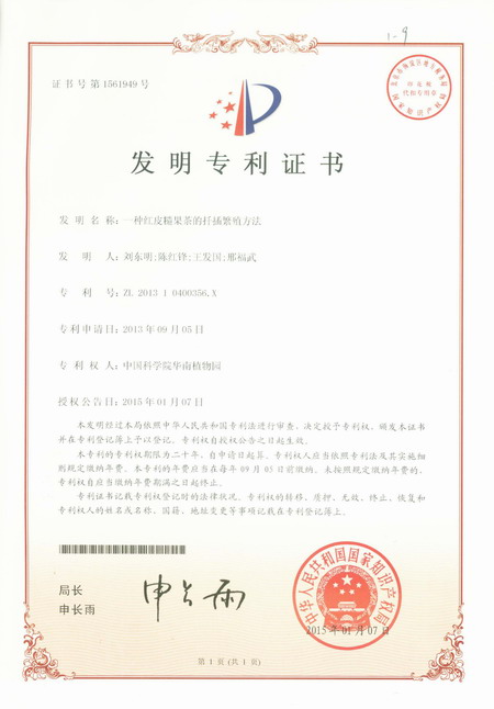 1月30日获悉,由华南植物园刘东明等科研人员完成的“一种红皮糙果茶的扦插繁殖方法”获得国家发明专利授权(专利号:ZL 201310400356.X)。
