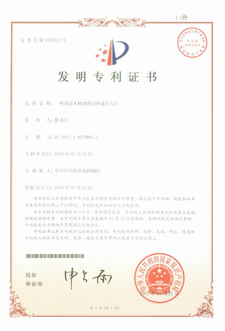 2月16日获悉,由华南植物园熊秉红完成的“一种顶果木植物的引种栽培方法”获得国家发明专利授权(专利号:ZL 201310078883.3)。
