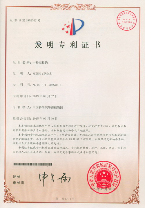 10月28日获悉,由中科院华南植物园郑朝汉、夏念和等科研人员完成的“一种高枝钩”获得国家发明专利授权(专利号:ZL201310342784.1)。