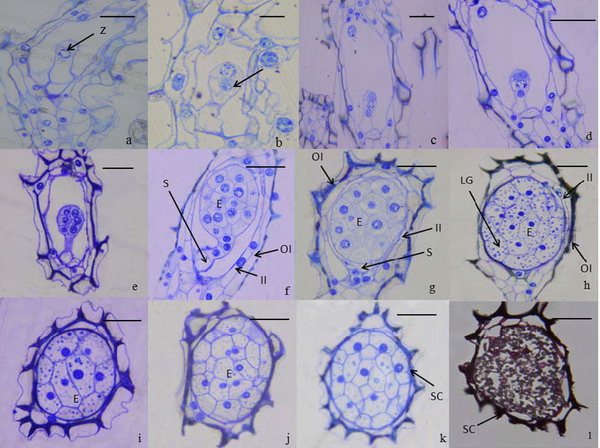 针对上述问题,华南植物园硕士研究生张艳艳在其导师曾宋君研究员、上海辰山植物园黄卫昌副园长等的指导下,对杏黄兜兰萌发困难的机制作了深入的研究并找到了解决其萌发困难的方法。实验结果表明:杏黄兜兰在成熟过程中经历了从低到高并急剧下降的萌发趋势;成熟种子无菌萌发率下降的原因与其种皮角质化形成不透水的保护层及其内部营养物质的消失具有重要的关系;选择合适胚龄的种子利用合适的培养基进行播种,利用合适浓度、合适时间的次氯酸钠处理成熟种子能有效地提高萌发率。