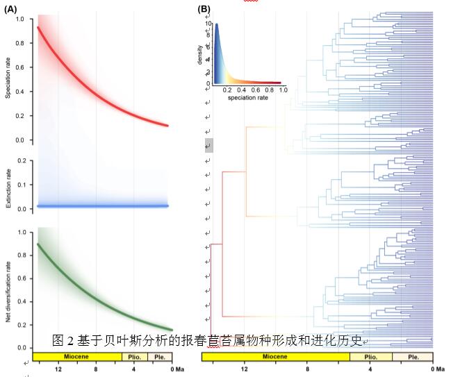 图2 基于贝叶斯分析的报春苣苔属物种形成和进化历史