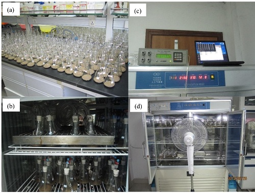 中科院华南植物园博士毕业生周伟平和申卫军研究员等科研人员开展了一项全因子设计的室内培养实验(图1),研究温度(10, 17, 24, 31和38 ℃)和湿度(20, 40, 60, 80和100% 田间持水量)的单因子效应以及交互效应对磷脂脂肪酸法(PLFA)测定的土壤微生物群落组成的影响。