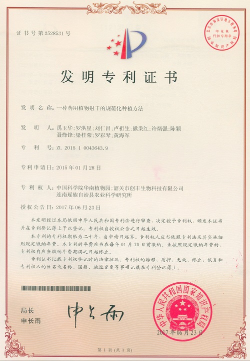 9月19日获悉,由中科院华南植物园禹玉华等科研人员完成的“一种药用植物射干的规范化种植方法”获得国家发明专利授权(专利号:ZL 201510043643.9)。