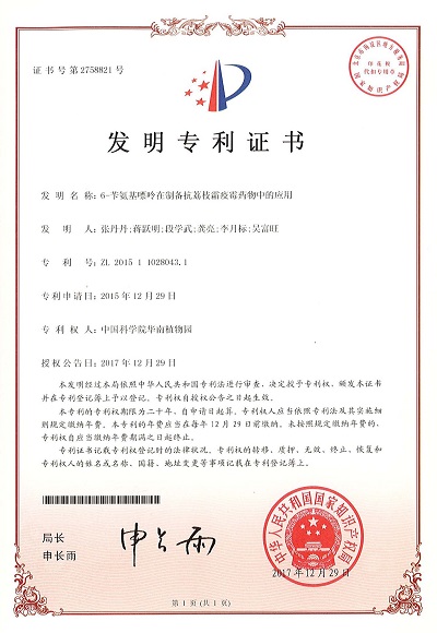 719日获悉,由华南植物园张丹丹、蒋跃明等科研人员完成的6-苄氨基嘌呤在制备抗荔枝霜疫霉药物中的应用获得国家发明专利授权(专利号:ZL 201511028043.1)。